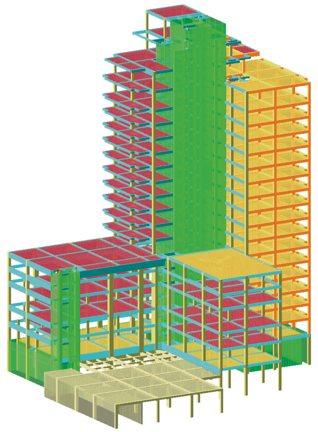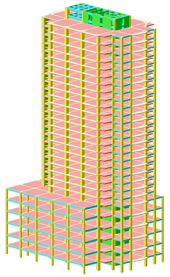 Strat可用板单元计算的任意空间板式结构。对于无梁楼盖这种特殊的结构型式,有专门处理。对于无梁楼盖结构,可设柱截面范围、柱帽范围内板不同的板厚度。