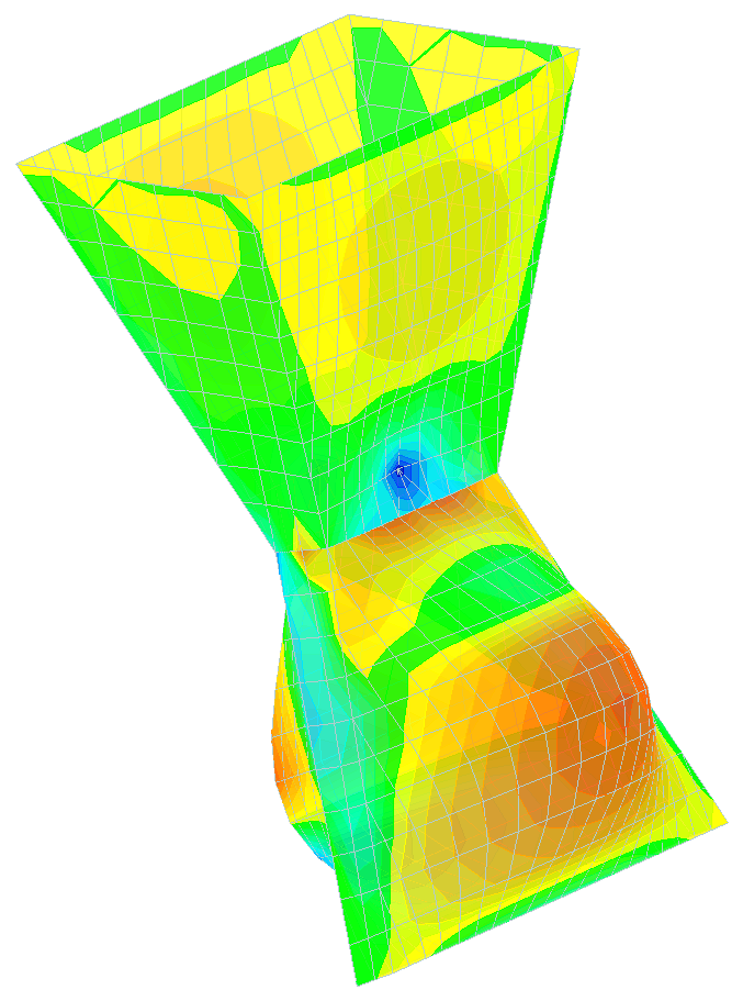 STRAT具有空间三维切面显示功能,可以将斜面展开,在平面内作图。对这种多斜面结构非常有效,可能很方便地选择其中一个平面进行操作。STRAT表面压力导算功能,在这种复杂结构中显示了强大的适应能力。上下两部分,分别选择一个内部指示点,即可完成全部加载。